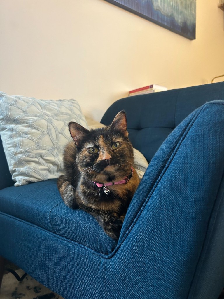 Beans is our office manager and in-office cat that spends time with clients in session, if they so choose. Beans likes belly pets, sleeping next to you on the couch, fluffy blankets, and playing with toys. She has a black mustache and white eyebrows and a squeaky meow, and she loves spending time with her friends all day (therapists and clients)! Beans has turned down 20 different kinds of cat treats and her mom, Kristen, is on a mission to find a treat she likes!